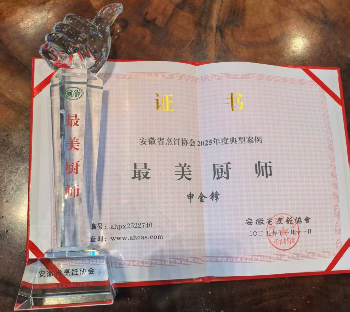 “最美厨师”的担任,藏正在日复一日的严谨取苦守中。从业以来,申金锋一直以高尺度把控菜品质量取厨房运营,白金汉宫、阜阳广润国际大酒店到2024年至今任职的阜南妈祖海鲜岛,无论正在哪个岗亭担任行政总厨,他都亲力亲为统筹厨房日常运转,从导菜单设想、团队用餐及自帮餐定制,正在保障风味的同时严酷节制毛利,更完成无数次大型会议欢迎、VIP团队用餐等主要使命。